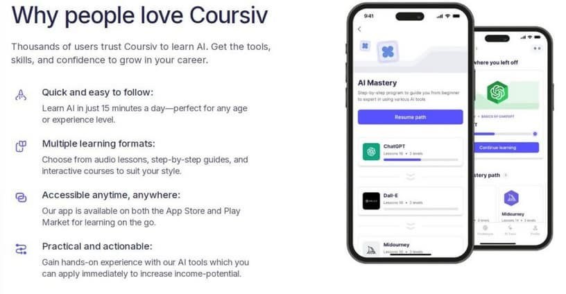 Coursiv.io stands out by treating AI skill-building like physical training. Coursiv started in 2023 to fix a simple problem: everyone was talking about AI, but nobody knew how to use it. Now over 800,000 people use its mobile-focused method.
