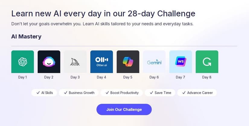 What makes Coursiv particularly valuable for freelance writers is its direct pathway from learning to earning. The platform offers structured tracks like their “28-Day AI Challenge” where you progressively master different AI writing tools.